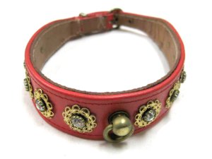 クラウンペット プードル用ダイヤつき平首輪 幅26mm レッド 首周り33〜37cm 牛皮革製【わけあり】 [dejima-p-507]
