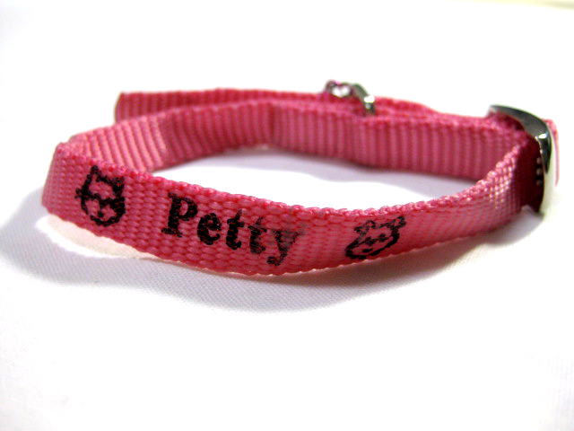 ぺティオの猫・小型犬用首輪です。 鮮やかな色で目立ちます!かわいい鈴が付いています。調節はピンのいらないフリータイプです。裏面は犬のプリントが書かれています。 色はピンクになります。 ★首輪 首まわりサイズ 15〜21cm 規格 10mm×250mm 体重 〜5kg 材質 ナイロン