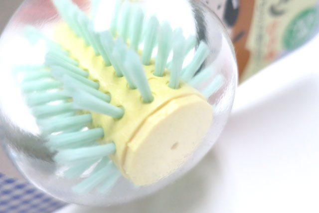犬用歯磨きおもちゃです。木の素材にナイロンのブラシが付いたデンタルおもちゃ。ころころ転がります。