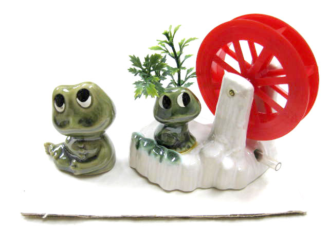 【おかげさまで完売しました】【日本製・訳あり】水槽用置物 エアーポンプにつけて泡を出す カエル水車セット