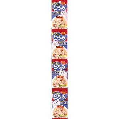 「だし」を効かせたとろみスープと素材のおいしい組み合わせの「とろみ」シリーズ。食べきりやすい35gサイズが4個つながったパウチです。 ささみ・まぐろのフレークに、焼津産かつおだしのとろみスープを加えました。しらす入り。